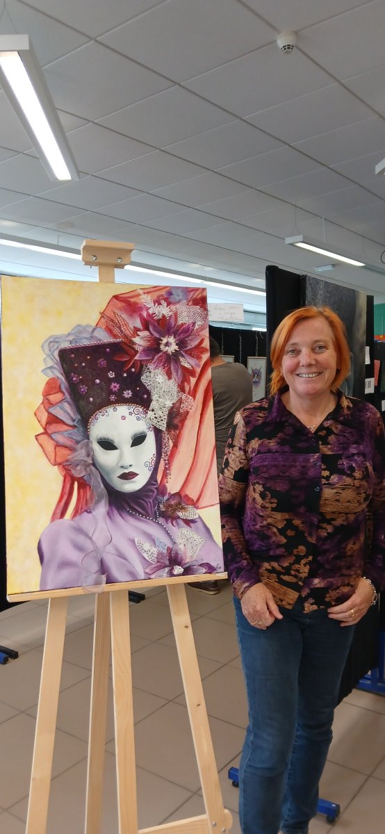 Un de mes tableaux (le Masque vénitien violet) a été choisi pour être à l'affiche de notre exposition. Un grand honneur!