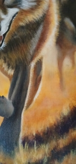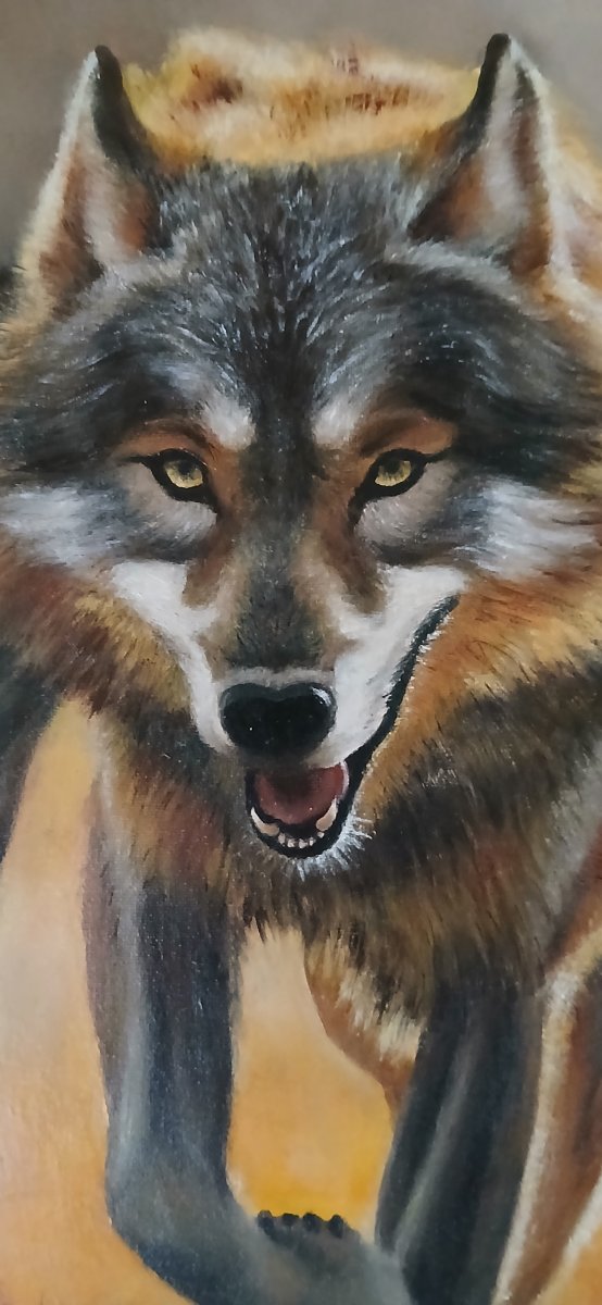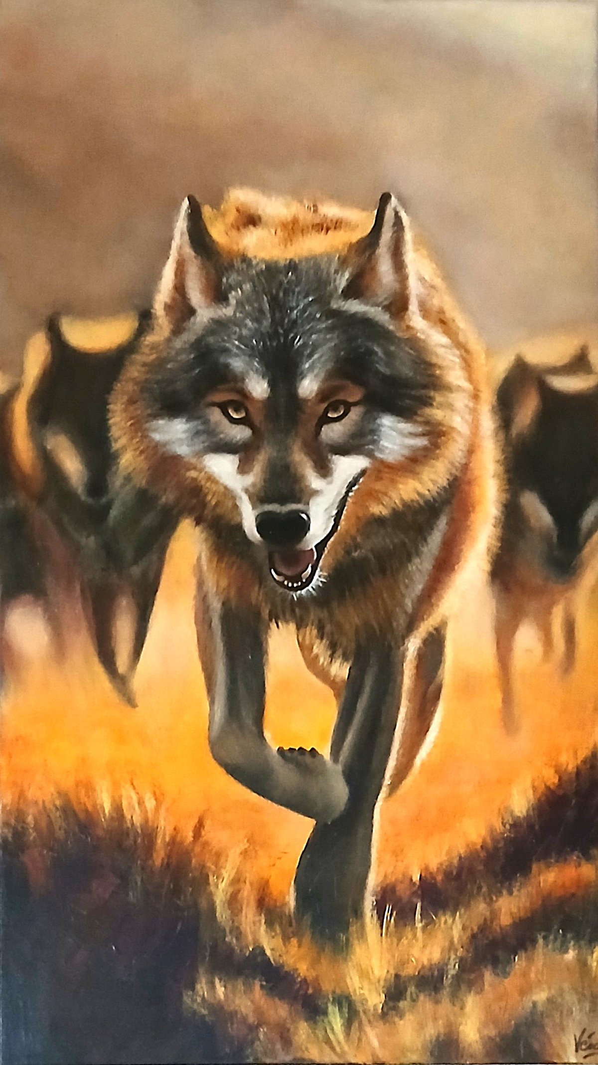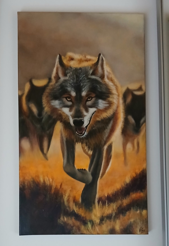 Ce tableau réalisé à la peinture à l’huile en 2024 a eu le 2ème prix du public lors de l’exposition annuelle d’Art In Jonage . Je l’avais réalisé pour décorer ma chambre en Haute Savoie sur le thème du Loup et n’avais pas prévu de le vendre. Mais vu son succès lors de l’exposition et sur les réseaux, je l’ai reproduit sur des petits canevas en 5 exemplaires.