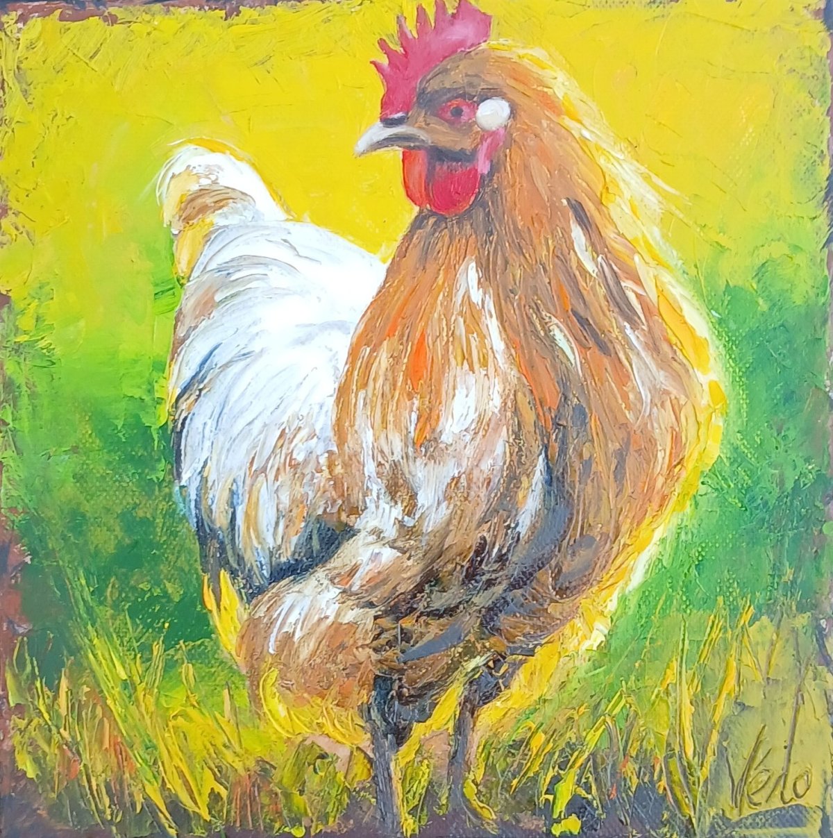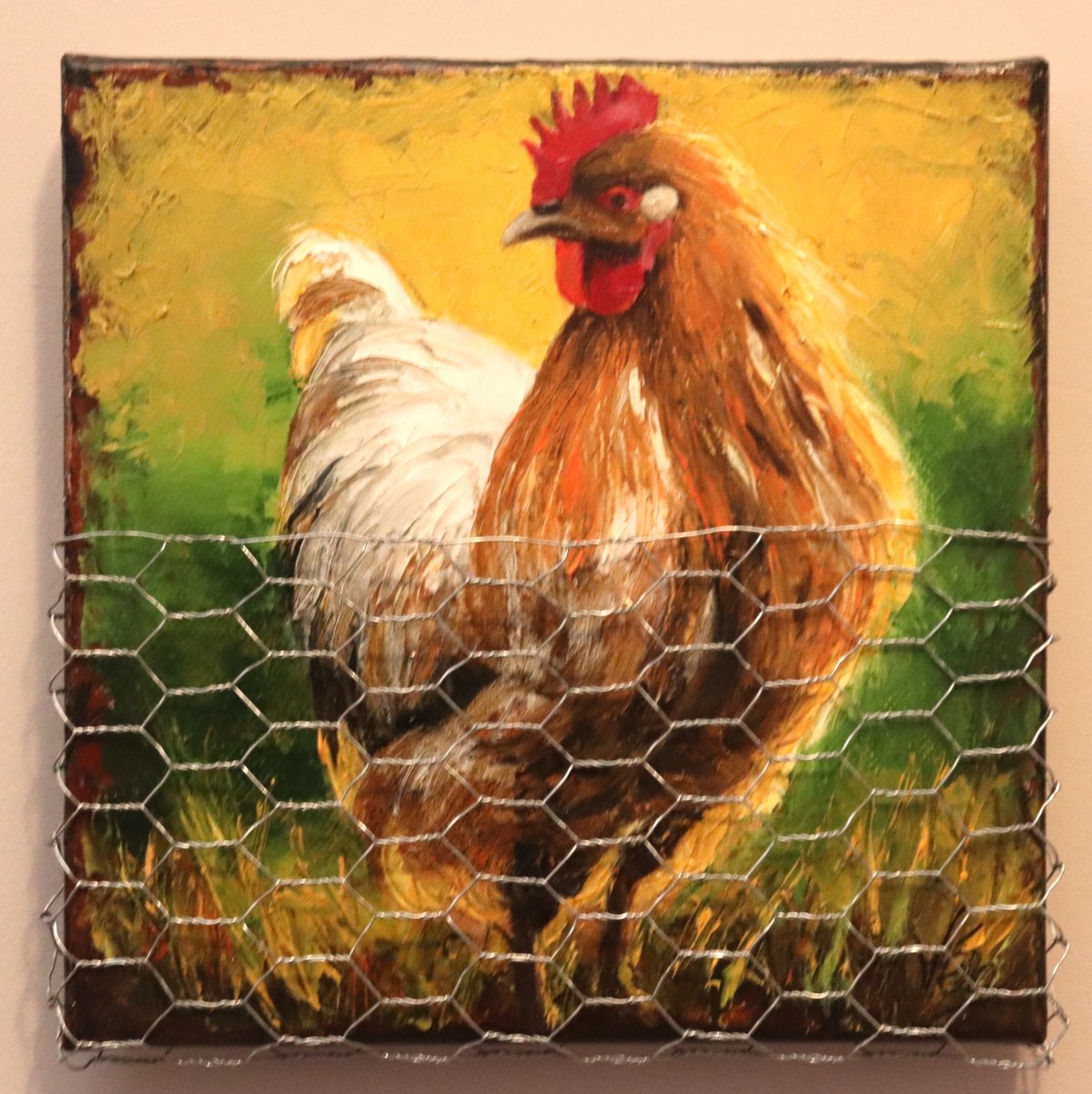 Ce tableau a été réalisé à la peinture à l’huile en 2024 sur une petite toile de 20x20 cm dans le but d’expérimenter l’ajout de grillage sur une toile. Je suis très contente du résultat, c’est une très belle petite toile avec un beau jeu d’ombre et de lumière. J’envisage de la refaire dans un plus grand format tant elle rend bien ! Le grillage rajouté autour de la toile ajoute une touche d’originalité.