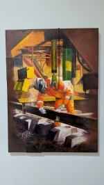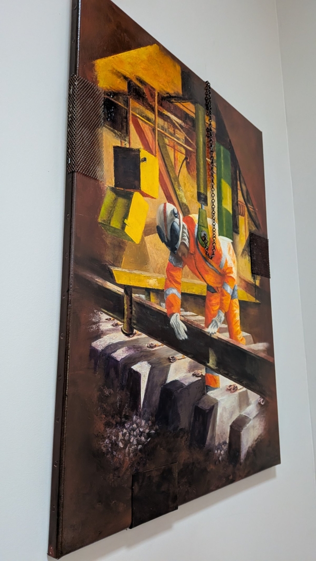 Ce tableau a été inspiré d’un zoom d'une photo de chantier de renouvellement de voies.