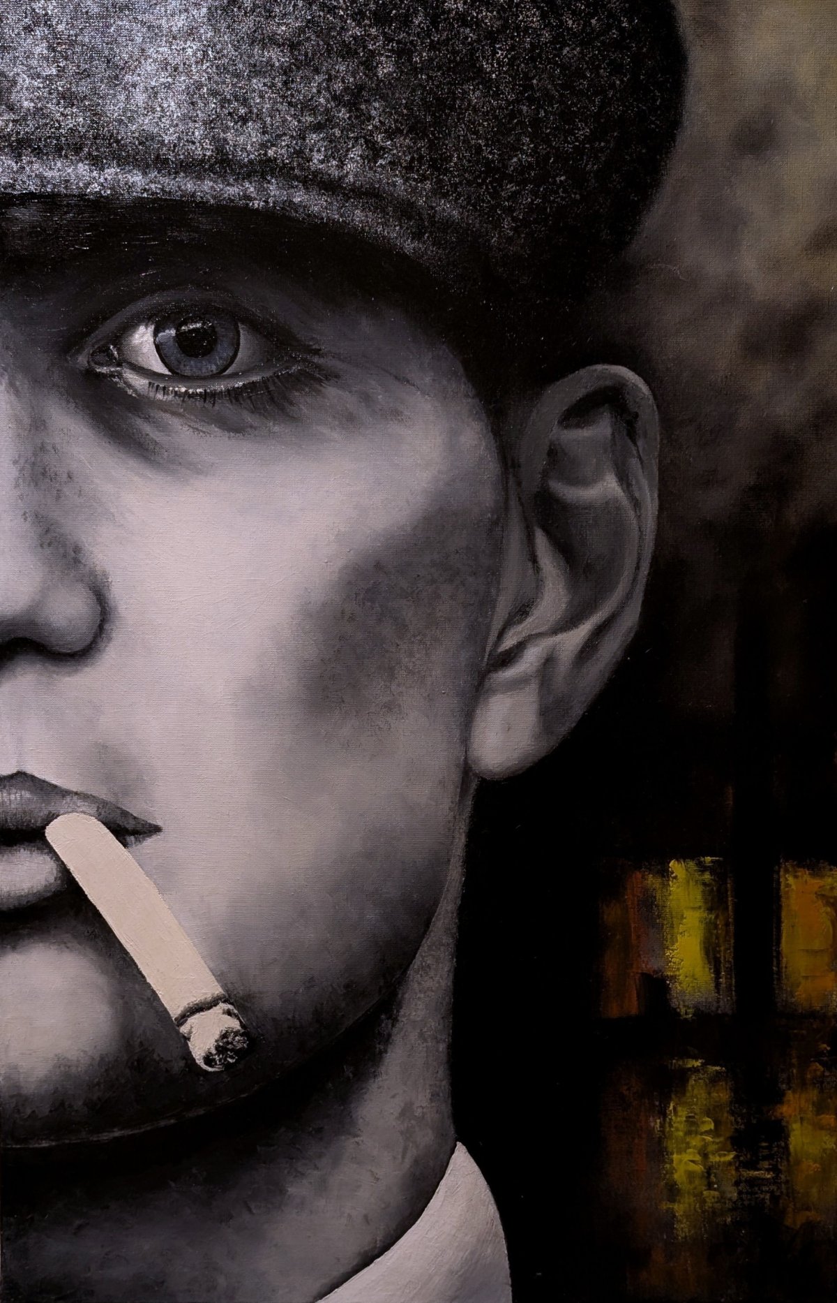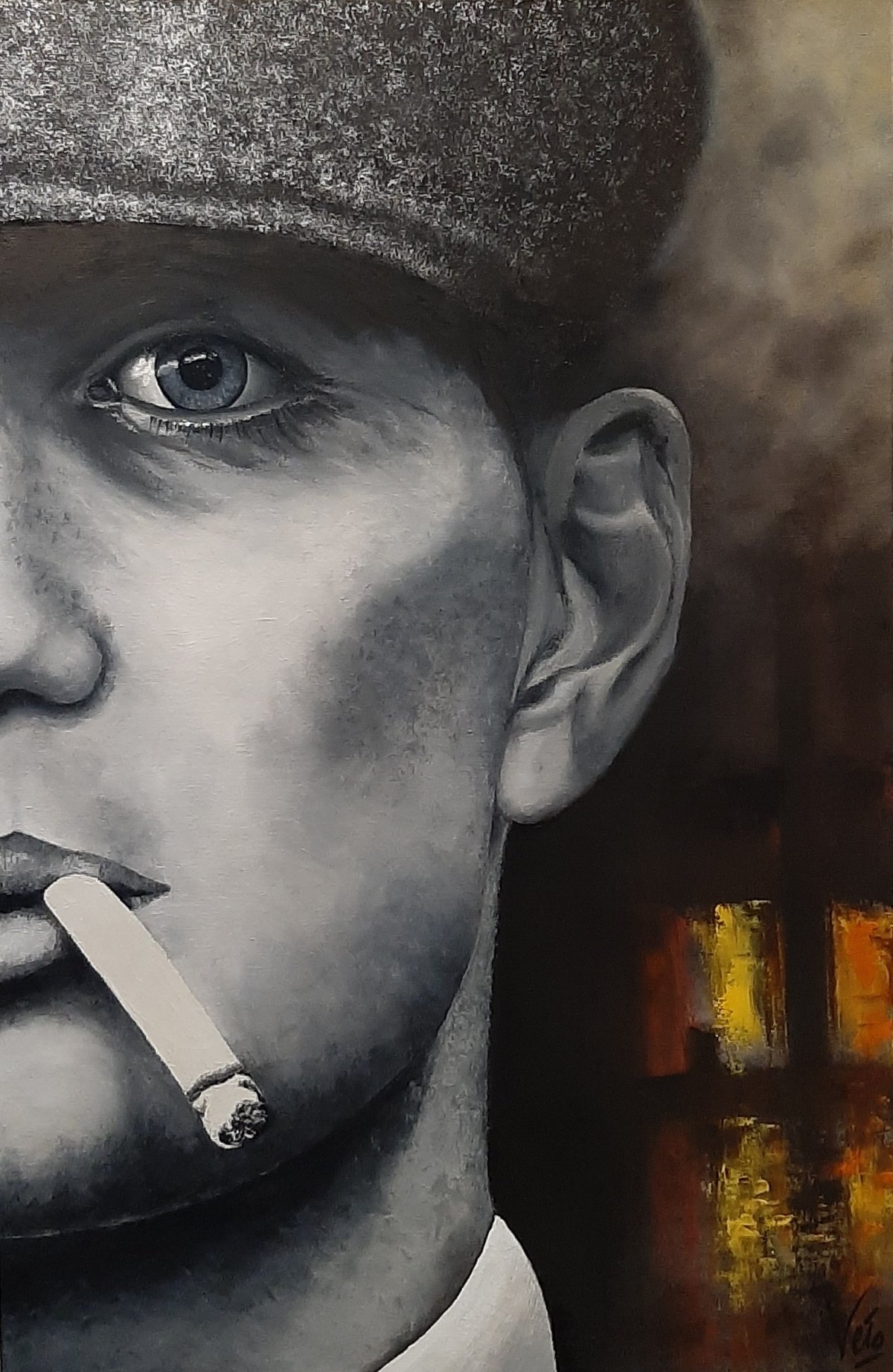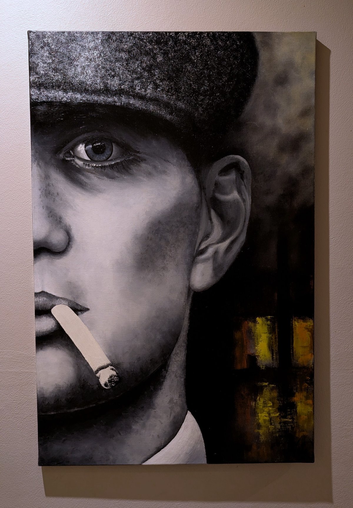 Demi-Portrait de Thomas Schelby, héros principal de la série britannique à succès sur Netflix : Peaky Blinders. Ce rôle est interprété par l’acteur Cilien Murphy. Ce tableau s’adresse donc aux nombreux fans de la série Peaky Blinders