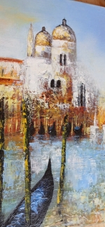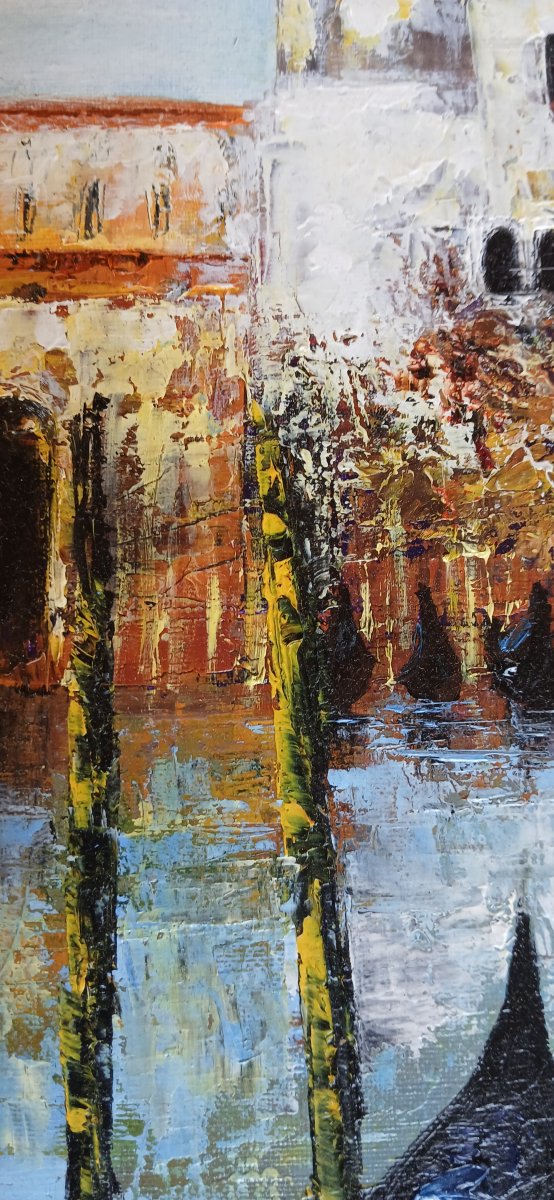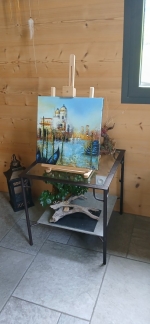 Entièrement réalisé à l’huile et aux couteaux avec des épaisseurs de peinture pour le premier plan.